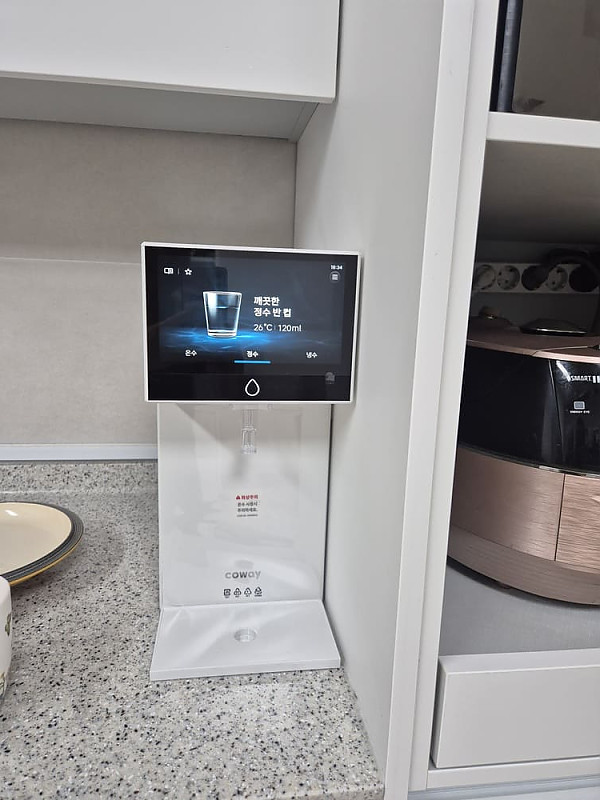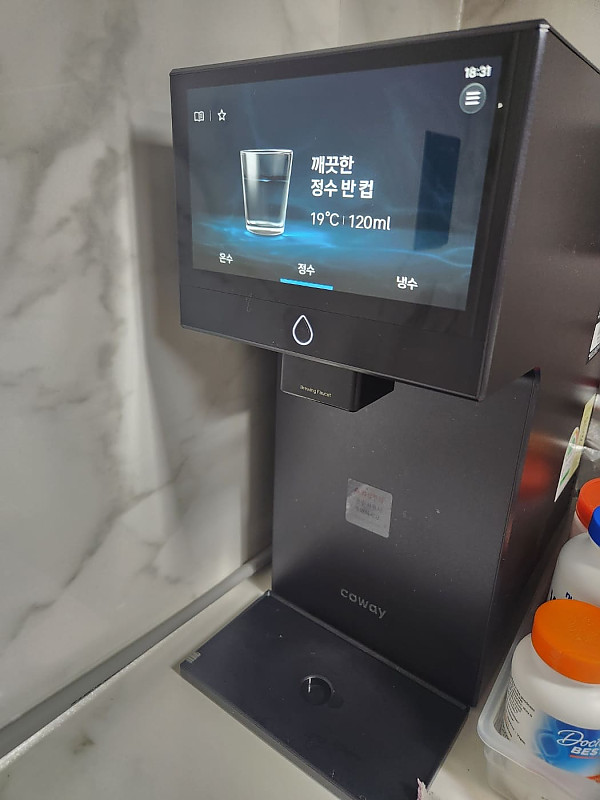베스트다에서 정수기 상담받던중 눈에 쏙 들어온 아이콘 프로 정수기입니다.터치스크린이 있다는게 너무 신선했고,세련되고 깔금한 디자인이 인테리어용으로도 너무 맘에 들어서 바로 설치까지 완료했습니다.