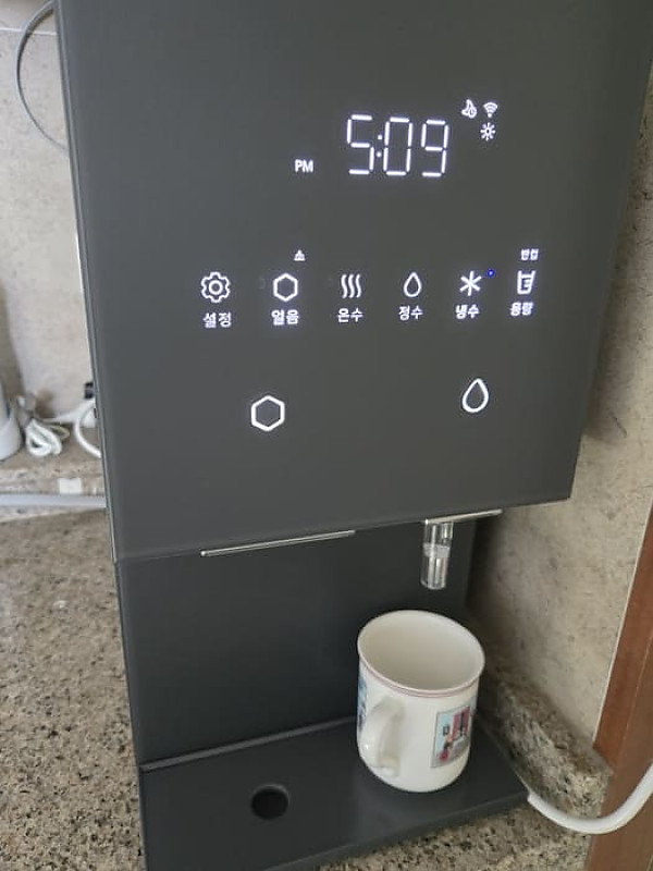 크기도 부담이 가지않는 미니멀한 사이즈, 냉온수 또한 잘 나오며, 사용법도 어렵지 않아서 편리하게 사용가능한 정수기인거같습니다!